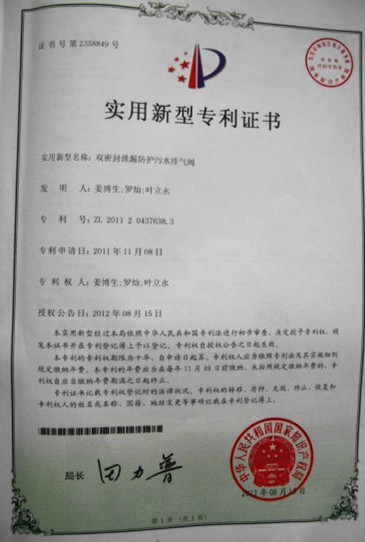 日前,集團“雙密封泄漏防護污水排氣閥”專利項目得到國家知識產(chǎn)權局正式批復,獲實用新型專利授權。