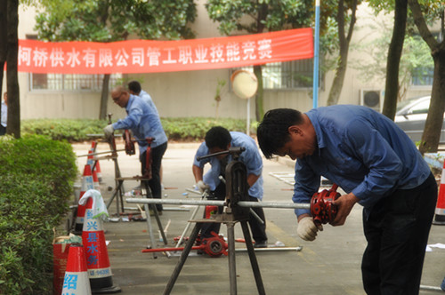 比賽分理論考試和實踐操作兩部分。理論考試涉及制圖、水力學(xué)、管材、管網(wǎng)管理、施工、安全等知識,實踐操作包括施工圖紙識讀、施工方案的編制、管道工程量的計算和管道的安裝等。此次職業(yè)技能競賽,全面檢驗了職工的崗位技能綜合素質(zhì),促進了供水搶修技能的提升。